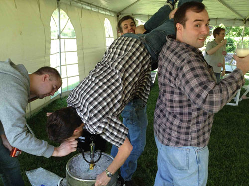A year ago when my college roommate Mark called to announce his engagement, I was naturally thrilled and honored to be included in his cadre of groomsmen. My anticipation of the event, marked by a current of nervousness at performing a reading and jitters at the prospect of seeing so many people after 5+ years, somewhat abated after hearing the beer lineup: Sam Adams Summer Ale, Dogfish Head 60 Minute IPA, and Allagash White. The former two are readily available in Oregon, but Allagash has fallen through the cracks of distributorship here, sadly.