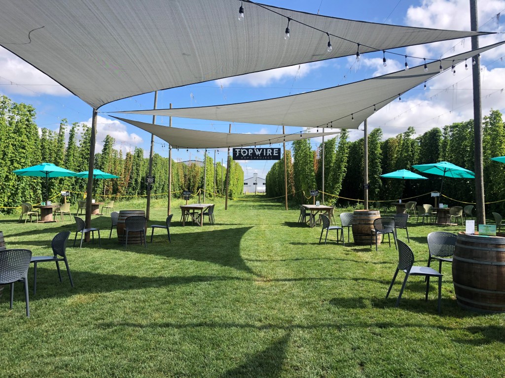 Topwire Hop Project is located on the property of Crosby Hop Farm, and is an immersive hop experience outdoor pub. Crosby, one of several hop growers in the Willamette Valley, has been the most visible from a marketing perspective, and works with breweries across the country and beyond to showcase its wares. Topwire brings it all home with a taplist rife with salmon-safe terroir.