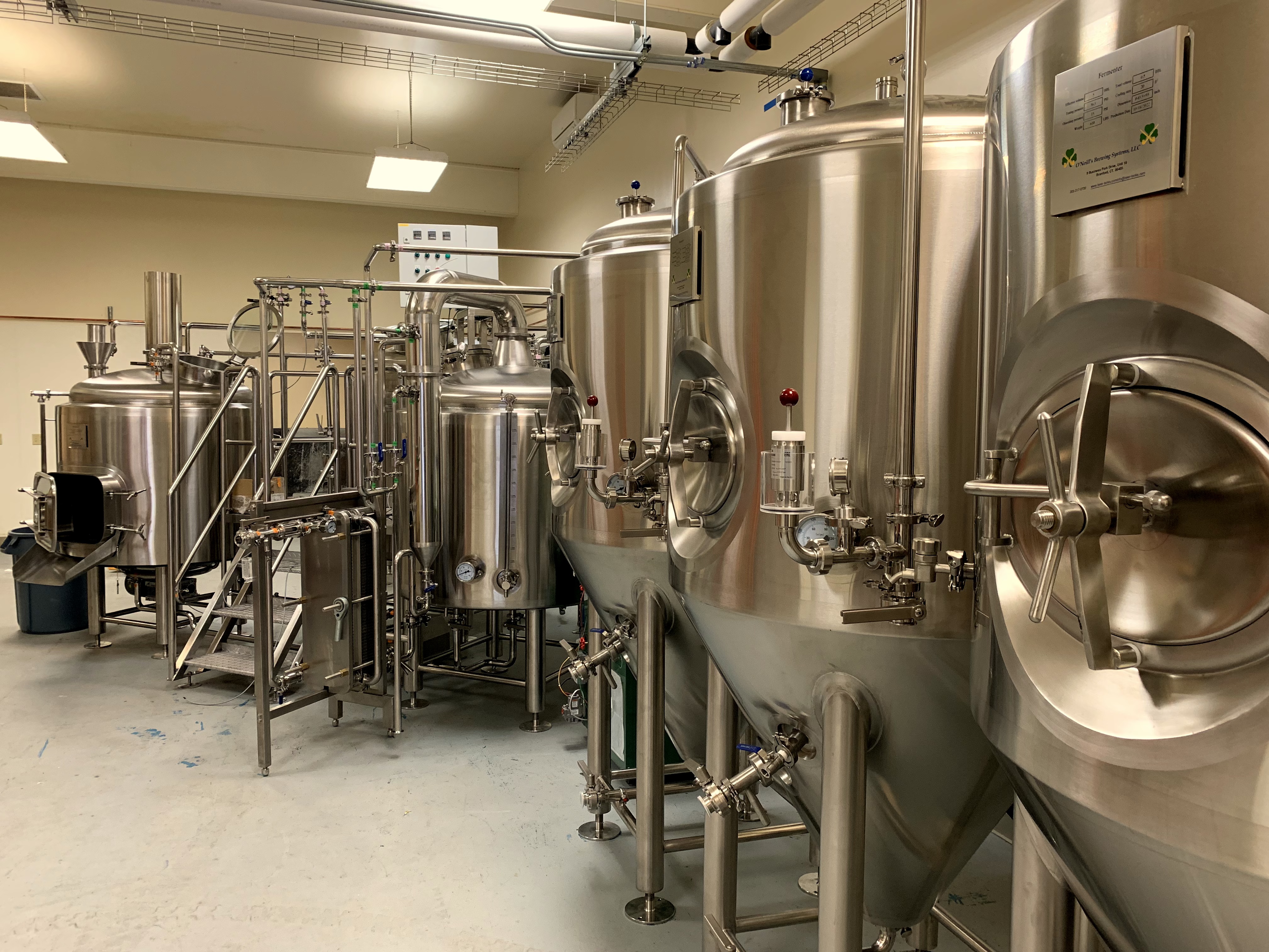 The steam-powered, hard piped, three-vessel 5-barrel brewing system, sourced from a Connecticut company and manufactured in China, is well made and features a mash rake (ooh, fancy!) and a condenser on the kettle, which will allow them to reclaim water from the boil. The steam-jacketed mash tun will allow for step mashing.