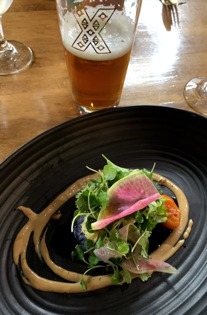 In practice, the mango was given a task: tie the room together. And it did, by providing a crux or a bridge between the food and drink. Everything about the causa was savory, from the earthy spice of the micro greens to the enveloping umami of the black garlic aioli. Having the beer alongside, with its fruity accent, added a subtle harmonic note and pleasing texture to the whole shebang.