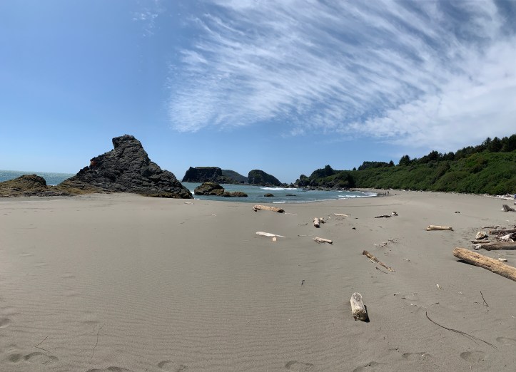 Now an annual family tradition, our final stop before home was Harris Beach State Park. Just north of Brookings, this is a very popular campground uphill from the beach. The beach itself is divided in two by a dramatic rock outcropping. The sunset views from the rocks or the north beach leave little to the imagination, and attract many shutterbugs as a result.