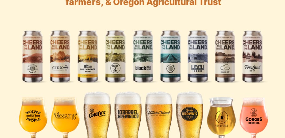 Cheers to the Land makes it easy to help protect Oregon farmland and taste Oregon-grown goodness all at once. October 10 marks the official release date for the 17 beers and ciders brewed around the state in collaboration with the Oregon Agricultural Trust (OAT) and in partnership with Goschie Farms and Gold Rush Malt.